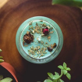 Ornée de romarin, eucalyptus, pétales de rose, une pomme de pin, aventurine verte & citrine. Les pierres de citrine aide à attirer l'abondance, la joie, d'éloigner les énergie négative, la nervosité et la fatigue