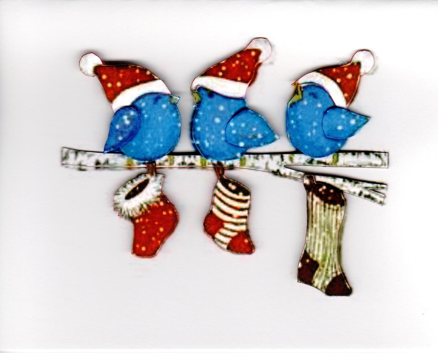 Carte sans texte - Oiseaux bleus en relief - Noël
